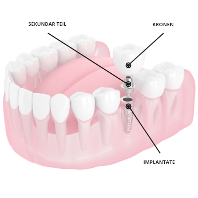 Unter günstigen Bedingungen können wir diesen Zeitraum verkürzen, bis hin zum sofortigen Einsatz Ihres Implantats mit einer provisorisch befestigten Prothese. Bei einem sofortigen Einsatz setzen wir den Heilungspfeiler zusammen mit dem Implantat ein.